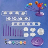 Erschaffe dein eigenes kleines Planetarium direkt im Zimmer. Das Set enthält alles Nötige, einschließlich Farben und Pinsel, um die weißen Planeten nach eigener Fantasie zu bemalen. Nach dem Zusammenbau des Modells und dem Platzieren der Planeten musst du nur das Licht ausschalten, um weitere Funktionen des Sets zu bewundern. Bestandteil ist eine leuchtende Sonne, die die Planeten in Bewegung setzt, und dank der Öffnung in der Scheibe kannst du Bilder der Planeten an die Wand projizieren.