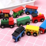 Dieser Holzzug ist mit starken Magneten an beiden Seiten jedes Wagens und der Lokomotive ausgestattet, was ein einfaches Verbinden und Trennen ermöglicht. Kinder können damit bis zu drei kürzere Züge oder einen langen Zug erstellen. Diese interaktive Möglichkeit hilft, ihre manuellen Fähigkeiten und die Koordination zu entwickeln.