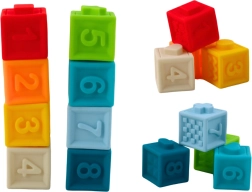 Die Klötze bestehen aus weichem Kunststoff, der für Kinder sicher und leicht greifbar ist.