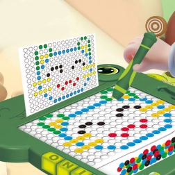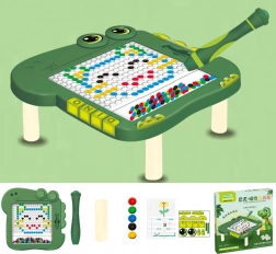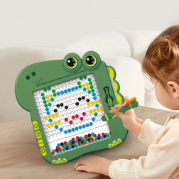 Entdecken Sie die magnetische Tafel, die Lernen in ein Spiel verwandelt. Dank des transparenten Fensters mit farbigen Kügelchen (schwarz, grün, blau, rot und gelb) und dem Magnetzeichner legen Kinder mühelos Muster, Buchstaben oder einfache Bilder. Das grüne Dinosaurier-Design erobert kleine Kreative im Nu.