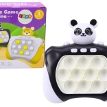 Ein unterhaltsames und lehrreiches Spielzeug in Pandaform kombiniert taktile Pop-it-Bläschen mit einer elektronischen Konsole. Bietet 4 Spielmodi zum Trainieren von Gedächtnis, Konzentration und Reaktionsfähigkeit, verfügt über ein kompaktes, tragbares Design und Soundeffekte. Ideal für zu Hause und unterwegs, für Einzelspieler und mehrere Spieler.