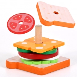 Dieses bunte Holzset ermöglicht Kindern, eigene „Sandwiches“ nach Fantasie oder anhand der beiliegenden Bestellkarten zu bauen. Dank einfacher visueller Anleitungen können Kinder Rezepte leicht nachahmen, lernen Farben und Formen zu unterscheiden und üben Schritt-für-Schritt-Planung.