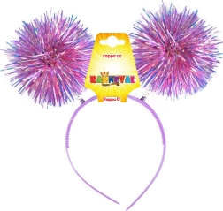 Das Stirnband ist mit zwei großen, glitzernden Pom-Pom-Kugeln geschmückt, die Aufmerksamkeit auf sich ziehen und eine fröhliche Atmosphäre schaffen.