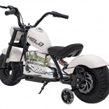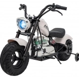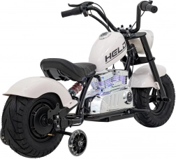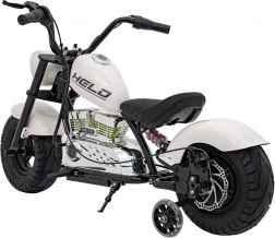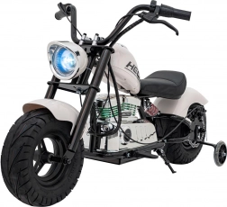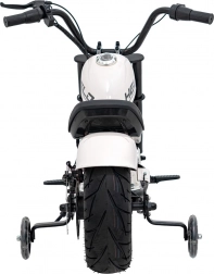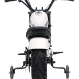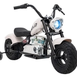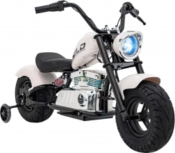 Die Chopper-Motorrad Warrior in Weiß ist ideal für kleine Fahrer, die echtes Fahrgefühl mit maximalem Komfort und Sicherheit erleben möchten. Der leistungsstarke 350-Watt bürstenlose Motor in Kombination mit der 36-V-Batterie sorgt für sanftes Anfahren und ausreichend Kraft, während zusätzliche Stützräder in den Anfängen die Stabilität sichern. Die robuste Konstruktion und die luftgefüllten Reifen 32 × 10 cm meistern Gehwege und glatten Untergrund.