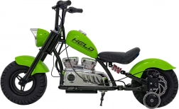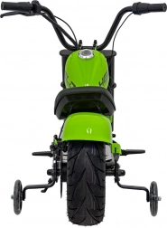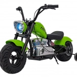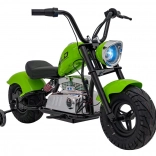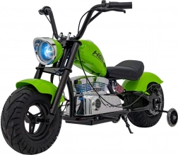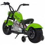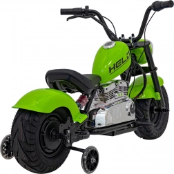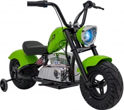 Das elektrische Motorrad Chopper Warrior in Grün ist ideal für kleine Fahrer, die echten Fahrspaß erleben möchten. Dank des leistungsstarken 350-W-Brushless-Motors und des 36-V-Akkusystems bietet es sanfte Beschleunigung und lange Ausdauer. Breite, aufpumpbare 32×10 cm Reifen zusammen mit Federung und seitlichen Stützrädern sorgen für Stabilität und Komfort auf verschiedensten Untergründen.
