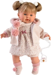 Die Puppe Llorens Alexandra wird mit Liebe zum Detail gefertigt, kombiniert hochwertiges, weiches Vinyl am Kopf und an den Gliedmaßen mit einem weichen Stoffkörper für komfortables Spielen. Nach Entfernen des Schnullers macht sie realistische Geräusche, wie „Mama“ und „Papa“, sowie das Weinen eines Babys, das mit dem magnetischen Schnuller beruhigt werden kann.