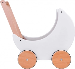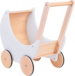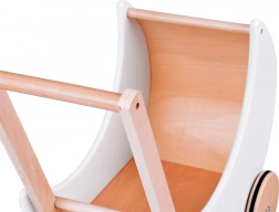 Niedlicher hölzerner Puppenwagen ist aus naturbelassenem Holz gefertigt, das sicher für Kinder ist. Sein ergonomischer Griff ist an kleine Kinderhände angepasst und fördert die Entwicklung des Gleichgewichts. Gummiräder schützen den Boden vor Kratzern und sorgen für einen leisen Lauf.