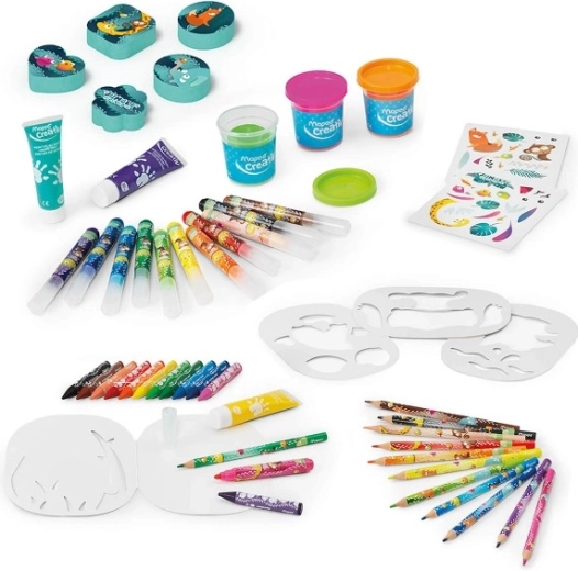 Der Jungle Box ist gefüllt mit bunten Materialien, die die kindliche Kreativität anregen. Filzstifte, Buntstifte und viele weitere Artikel stehen zur Verfügung, damit Ihre Kinder erstaunliche Werke schaffen können.