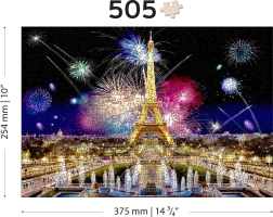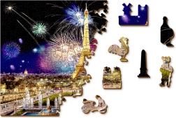 Genießen Sie ein einzigartiges Puzzleerlebnis mit dem hochwertigen Holzpuzzle von WOODEN CITY. Das Bild des nächtlichen Eiffelturms mit Feuerwerk besticht durch satte Farben und präzise Laserbearbeitung. Dank des beidseitigen 2-in-1-Designs können Sie nach dem Bild oder nach den Formen auf der Rückseite puzzeln.