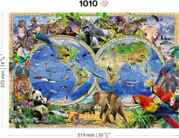Gönnen Sie sich ein Premium-Puzzelerlebnis mit dem Holzpuzzle WOODEN CITY – Weltkarte der Tiere. Einzigartige Teile in Tierformen mit fein laserbetonten Details sorgen für einen außergewöhnlichen visuellen Effekt und machen das Puzzeln zu einem kreativen Abenteuer. Einige Teile lassen sich auch als kleine Figuren verwenden.