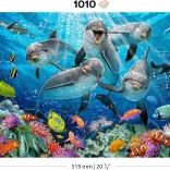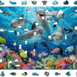 Gönnen Sie sich ein einzigartiges Puzzle-Erlebnis mit einem fröhlichen Delfinmotiv. Dank speziell geformter Teile, von denen einige die Form von Tieren haben und sogar als kleine Figuren dienen können, erwartet Sie ein außergewöhnliches Puzzeln voller Überraschungen. Präzise Laserbearbeitung sorgt für scharfe Motivdetails und absolut glatte Kanten ohne Splitter.
