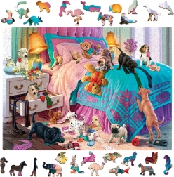 Das Holzpuzzle WOODEN CITY Freche Welpen bringt Spaß für Kinder und Erwachsene. Die originellen, in Silhouetten von Tieren, Bauwerken und Gegenständen geformten Puzzleteile verleihen dem Puzzeln eine neue Dimension und einige Stücke lassen sich sogar als kleine, eigenständige Figuren verwenden. Dank der laserbetonten Details kommen Motiv und Verarbeitungsqualität bestens zur Geltung.