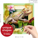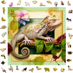 Gönnen Sie sich ein Premium-Puzzelerlebnis. Dieses Holzpuzzle aus HDF-Platte mit einer Stärke von 3–4 mm hat lasergeschnittene Teile mit glatten, splitterfreien Kanten und Details, die das Motiv des Chamäleons und der Blumen wunderschön hervorheben. Ein Teil der Puzzleteile ist in Form von Tieren, Bauwerken oder Gegenständen gestaltet, sodass sie auch als kleine eigenständige Figuren aufgestellt werden können.