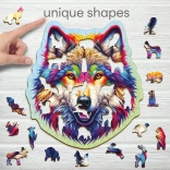 Die Herausforderung bei diesem Puzzle besteht in seiner höheren Schwierigkeit aufgrund der begrenzten Anzahl von Teilen und ihrer vielfältigen Formen. Jedes Teil ist präzise verarbeitet und das fertige Puzzle mit einer Größe von ca. 19,3 x 21,1 cm bietet ein schönes Bild des Regenbogenwolfs. Im Paket finden Sie auch eine separate Vorlage, um das Puzzlen zu erleichtern.