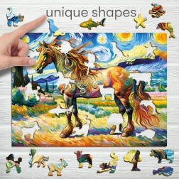 Das stilvolle Holzpuzzle mit dem Motiv eines modernen Pferdes vereint Design und Spaß perfekt. Dank der laser-geschnittenen Teile mit glatten Kanten lässt es sich hervorragend legen, und einige Teile in Tierform können sogar als kleine Figuren verwendet werden. Ideal als originelles Geschenk für Kinder und Erwachsene.