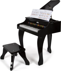 Die realistische Ausführung des kleinen Flügels mit aufklappbarem Deckel motiviert zum Spielen und passt wunderbar ins Kinderzimmer.