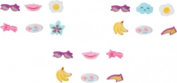 Ein Set dekorativer Anstecker (Brille, Blumen, Sterne u. a.) ermöglicht bei jedem Spiel einen einzigartigen Look.