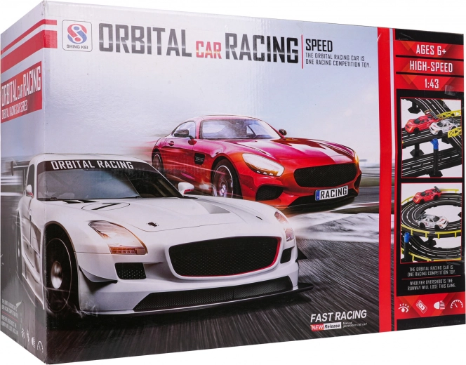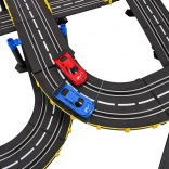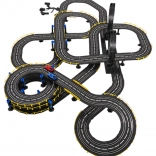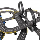 .  | Große Rennstrecke im Maßstab 1:43 mit zwei ferngesteuerten Autos für Kinder ab 3 Jahren. Die einzelnen Bauelemente ermöglichen den Aufbau einer Strecke mit scharfen Kurven, Spiralen und Geraden – alles für maximalen Spaß und mehr Spannung beim Spielen. Dieses einzigartige Set ist das ideale Spielzeug für kleine Fans von Autorennen. Die Strecke ist mit einem Rundenzähler ausgestattet. Sie wird mit 220 V / 50 Hz Netzstrom betrieben.  |