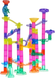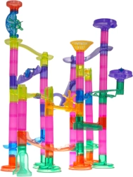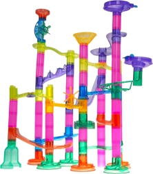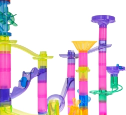 Die farbenfrohe und stabile Murmelbahn aus transparenten Teilen bringt Kindern die Freude am Entdecken von Bewegung, Schwerkraft sowie Ursache und Wirkung näher. Kinder entwerfen und bauen ihre eigenen Konstruktionen und beobachten anschließend, wie die Kugeln durch Tunnel, Spiralen und Trichter sausen. Blinkende, batteriebetriebene Kugeln verleihen jeder Fahrt faszinierende Lichteffekte.