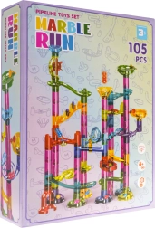 Mit 105 Teilen bauen Sie einfache bis komplexe Strecken mit Spiralen, Trichtern und Tunneln. Kinder entwickeln ihre Fantasie und lernen beim Entwerfen einer stabilen Bahn Probleme zu lösen.
