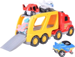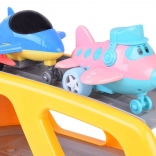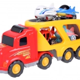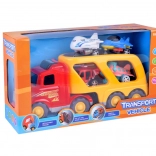 Zum Set gehören drei Flugzeuge und ein Hubschrauber, die sich über die ausklappbare Rampe leicht verladen lassen. Die robuste Ausführung aus Kunststoff in lebendigen Farben ist sicher und widerstandsfähig für den täglichen Spielgebrauch.