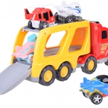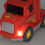 Dieser große Kinder-Sattelschlepper mit Auflieger ist ideal für kleine Fahrerinnen und Fahrer sowie Pilotinnen und Piloten. Dank des Friktionsantriebs genügt ein Anschubsen auf einer glatten Oberfläche und das Fahrzeug fährt los. Auf dem Dach der Kabine befindet sich ein Knopf, der realistische Motor- und Hupgeräusche sowie Lichteffekte aktiviert – für noch mehr Spielspaß.