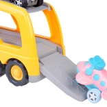 Mit einem Knopfdruck leuchten die Lichter auf und Start-, Motor- sowie Hupgeräusche erklingen – Kinder erleben actionreiches Spiel wie in echt.