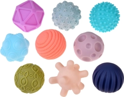 Das sensorische Set bietet Kindern ein vielfältiges haptisches Erlebnis – jeder Ball hat eine andere Oberfläche, die taktile Wahrnehmung, Konzentration und Beruhigung unterstützt. Das Spielen mit den Bällen hilft, den Greifreflex zu trainieren, die Hand-Auge-Koordination zu verbessern und regt natürliche Bewegung an.
