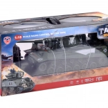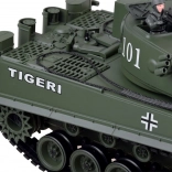 Genießen Sie dynamische Gefechte mit dem detailreichen Modell des Panzers GERMAN TIGER. Das ferngesteuerte Modell im Maßstab 1:18 imitiert die Bewegung eines echten Panzers: Vorwärts- und Rückwärtsfahrt, Drehen auf der Stelle, Bogenmanöver und eine gleichmäßige Turmrotation mit verstellbarem Rohr. Das Schießen mit Plastikkugeln wird von realistischem Schussgeräusch und einem Rückstoß-/Recoil-Effekt begleitet.