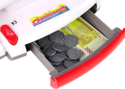 Dank eines funktionalen Rechners und einer offenen Geldschublade erinnert die Kasse beim Spielen an eine echte Kasse.