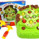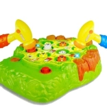 Das Spielset enthält eine grün-braune Kunststoffplatte mit bunten Tierköpfen und zwei Hämmer, was das gleichzeitige Spiel von zwei Spielern ermöglicht. Die bunte Grafik von Tieren und Pflanzen auf der Platte zieht jedes Kind an, das sich mit diesem Spiel nie langweilen wird. Kinder haben nicht nur Spaß, sondern erlernen auch neue Fähigkeiten wie das Erkennen von Farben und Geräuschen.