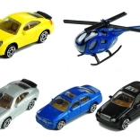 Das Set enthält vier verschiedene farbige Autos und einen blauen Hubschrauber, die viele dramatische Spielmöglichkeiten bieten. Der Hubschrauber hat einen beweglichen Rotor, was die Interaktivität erhöht.