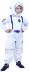 Der weiße Overall mit silbernen Elementen und Aufnähern sorgt für einen realistischen Space-Look, der jeden kleinen Entdecker begeistert.