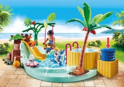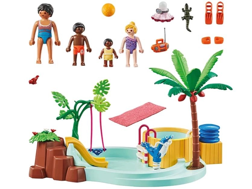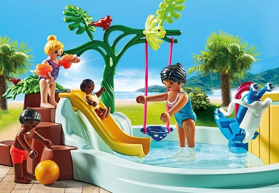 Ein spannender Wasser-Spaß für Jung und Alt! Der Playmobil Kinderpool mit Whirlpool bietet eine Vielzahl von Attraktionen, darunter eine Wellenrutsche, eine Kinderschaukel und eine Federwippschaukel.