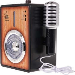 Der Kinder-Karaoke-Verstärker bietet eine tolle Kombination aus Musik, Licht und Spielfunktionen. Die Bedientasten sind übersichtlich, die Lautstärke wird mit einem Drehregler eingestellt, und beim Einschalten begrüßt eine fröhliche Melodie mit Lichtshow. Schließen Sie das Mikrofon an, schalten Sie Rocksongs oder Kinder-Melodien ein und die Show kann beginnen.