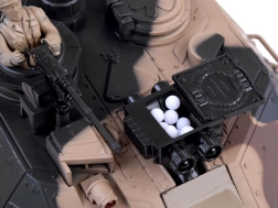 Enthalten ist ein leistungsstarker 7,4-V-1200-mAh-Akku, der bis zu 40 Minuten Fahrzeit ermöglicht. Über die Taste BULLET SHOOTING am Controller lassen sich Kugeln (Kunststoff und Wasser – Gel) bis zu 25 Meter weit abfeuern, im Set ist zudem eine Zielscheibe für Präzisionstraining enthalten. Der 2,4-GHz-Controller bietet zuverlässige Steuerung und die Taste MACHINE GUN SOUND fügt das Geräusch eines Maschinengewehrs hinzu.