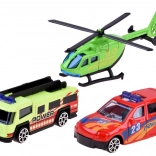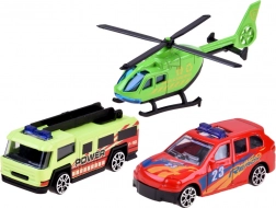 Garage für Spielzeugautos mit drei Autos und Zubehör