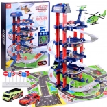 Kinderspielplatzparkplatz 7 Ebenen mit Hubschrauber und 10 Autos