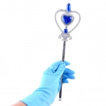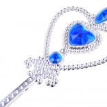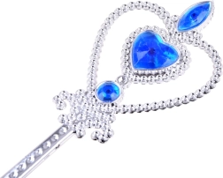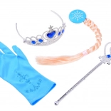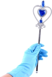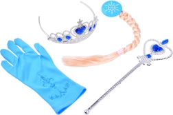Eine blaue verzierte Anstecknadel mit einem blonden Zopf, die leicht angebracht werden kann, wird dabei helfen, dem Lieblingsmärchencharakter näher zu kommen. Krone und Zepter sind wesentliche Accessoires jeder kleinen Prinzessin, deshalb wurden sie mit blauen Plastikelementen geschmückt. Die Bastelarbeiten und Dekorationen runden das elegante Outfit der kleinen Mädchen ab.