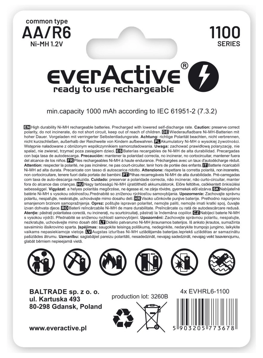 Entdecken Sie die innovativen R6 AA 1100 mAh Akkus der Marke EverActive, die Teil der Infinity Line sind. Diese wiederaufladbaren Batterien wurden mit der Technologie "ready to use" entwickelt, was bedeutet, dass sie vorgeladen und bereit f9r den sofortigen Einsatz sind:<"/p>