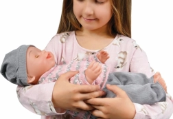 Diese interaktive Puppe aus der NATALIA COLLECTION verbindet klassischen Spielspaß mit modernen Funktionen. Nach dem Trinken aus dem Fläschchen setzt sich das Baby aufs Töpfchen und macht Pipi, auf das Streicheln des Bäuchleins reagiert es mit fröhlichem Lachen und Brabbeln und beim Hinlegen schließt es die Augen und gibt beruhigende Geräusche von sich.