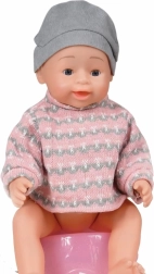 Fülle das beiliegende Fläschchen, gib der Puppe zu trinken und setz sie aufs Töpfchen – nach dem Drücken der Taste über dem Bauchnabel beginnt sie Pipi zu machen. Ein tolles Hilfsmittel, um Hygieneroutinen zu erlernen.