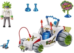 Ab an den Start mit dem verrückten Professor und seinem wissenschaftlichen Gokart! Dank des Aufzieh- (Pull-Back) Antriebs schießt das Fahrzeug nach vorne, während Reagenzgläser, der „Jet“-Antrieb und elektrische Ausrüstung jedem Rennen eine große Portion Fantasie verleihen. Die futuristische Karosserie lässt sich mit verschiedenen Accessoires verzieren, um eine einzigartige Rennmaschine zu gestalten.