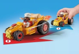 Das Fahrzeug hat Platz für eine PLAYMOBIL-Figur und sorgt dank des praktischen Pull-Back-Antriebs für sofortigen Spaß ganz ohne Batterien. Die fröhlichen Karosserien lassen sich mit verschiedenen Accessoires verzieren, sodass Kinder ihre Rennmaschine ganz nach ihren Wünschen gestalten können.