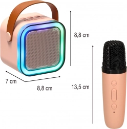 Genießen Sie spontanes Singen überall – der kompakte rosa Lautsprecher mit Lederschlaufe lässt sich leicht transportieren und bietet klaren Sound mit einer Leistung von 6 W. RGB-Beleuchtung mit 5 Modi untermalt die Partystimmung, während 2 kabellose Mikrofone Duette ohne Kabelsalat ermöglichen.