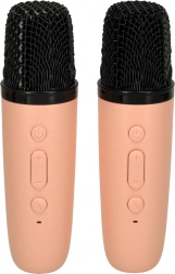 Musik spielen Sie bequem über Bluetooth oder von einer Speicherkarte ab. Am Gerät befinden sich Tasten für die schnelle Steuerung von Titeln und Lautstärke, zudem gibt es 6 Stimmveränderungsmodi für extra Spaß. Eingebaute Akkus sorgen für bis zu 2,5 Stunden Laufzeit beim Lautsprecher und 3,5–4 Stunden bei den Mikrofonen.