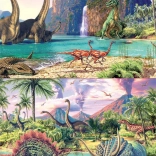 Dieses Set bietet doppelten Spaß: zwei separate Puzzles mit gleicher Teilezahl und identischen Maßen. Sind beide Motive gelegt, müssen sie nur aneinandergelegt werden und Sie erhalten ein beeindruckendes Panoramabild voller Dinosaurier, das jedes Kinderzimmer erhellt.