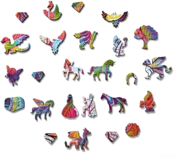 Entdecken Sie die Magie des Puzzelns mit dem Holzpuzzle Regenbogen Einhorn, das für Enthusiasten jeden Alters entworfen wurde. Dieses Puzzle bietet: