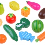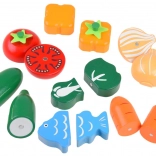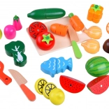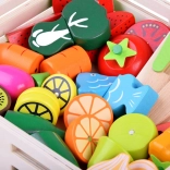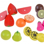 Jedes Stück Obst und Gemüse ist mit einem Magneten ausgestattet, der eine realistische Teilung in Stücke ermöglicht.