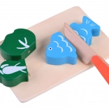 Dieses Holzset enthält eine vielfältige Auswahl an Obst, Gemüse und Fisch, alle mit Magneten für eine einfache Teilung versehen. Jedes Stück ist aus hochwertigem Holz gefertigt und mit ungiftigen Farben bemalt, die die Sicherheit für die Kleinsten gewährleisten.